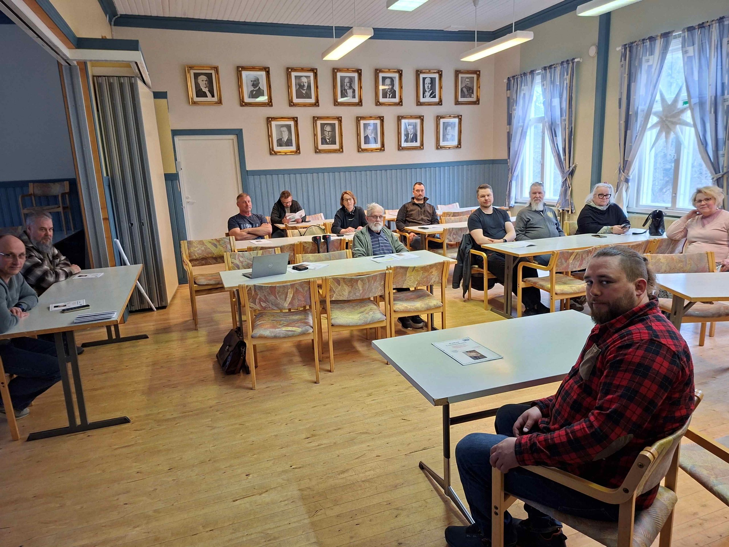 Elina Ikkala luki kirjatut paikalla olijat, joita oli 12 (14) vesiosuuskunnan jäsentä ja 1 (2) perheenjäsen. (Suluissa v. 2025 tiedot).